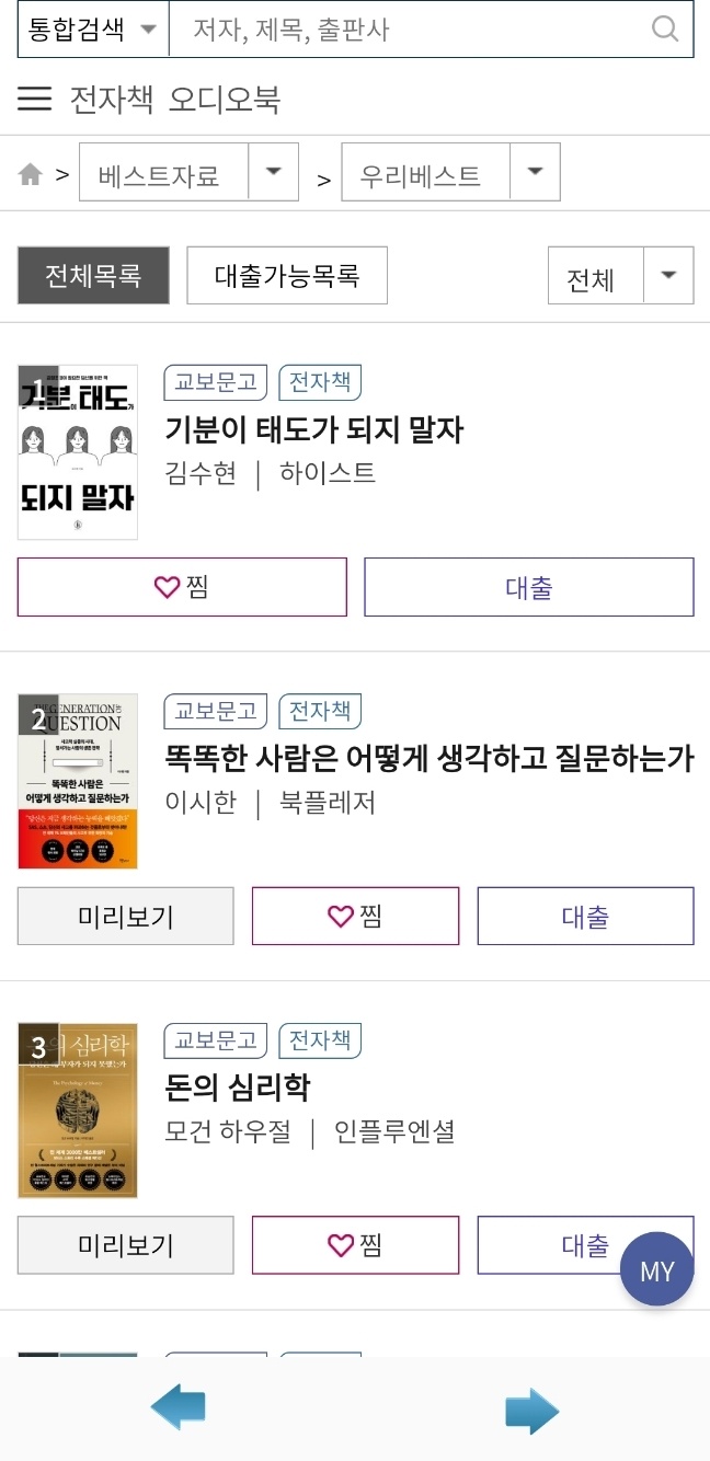 구독형 전자책은 최근에 나온 것들도 있으니 두 개 다 검색해서 있는 곳에 있는 걸로 이용하시면 된답니다.